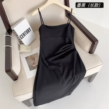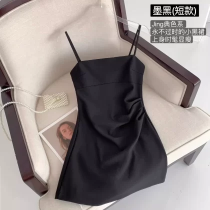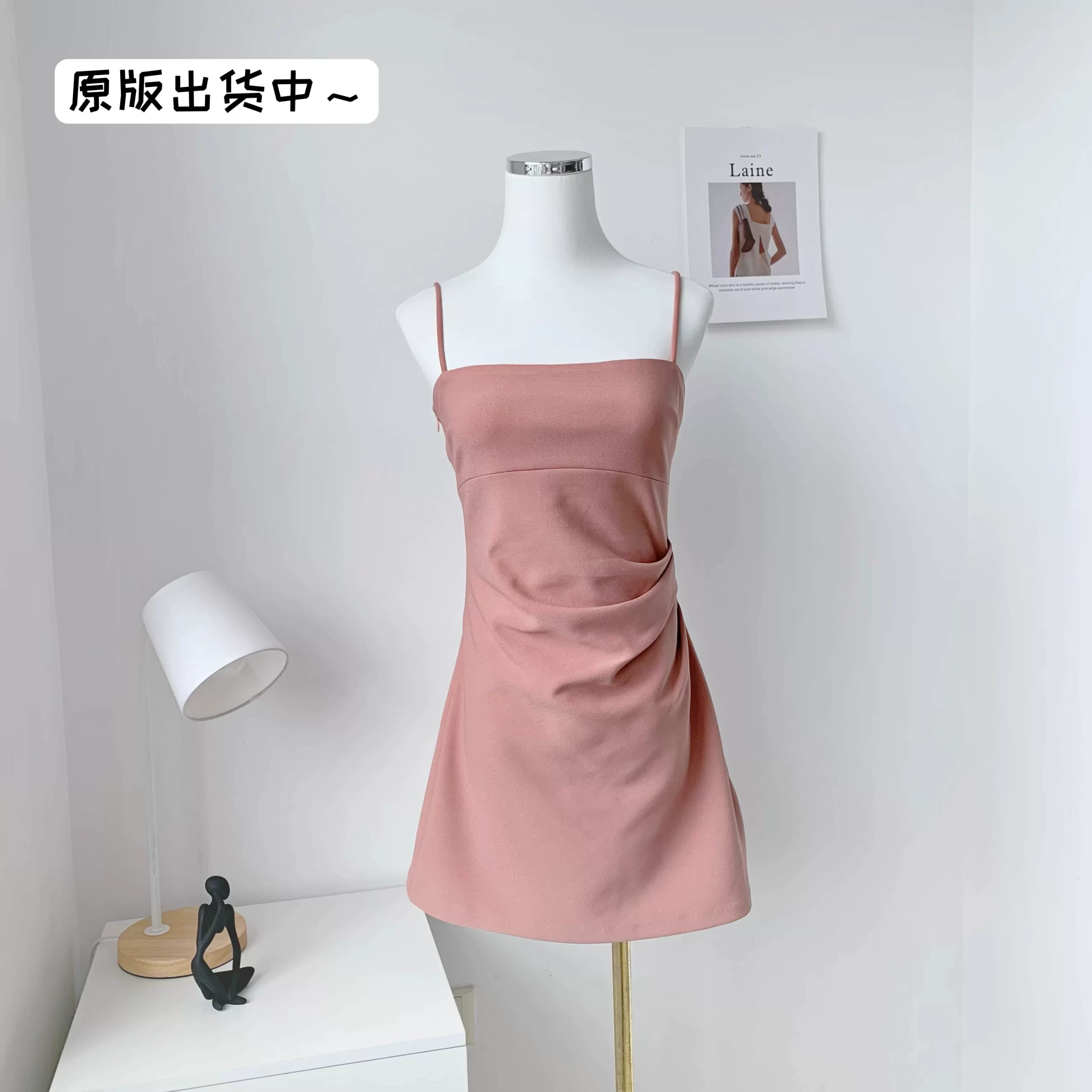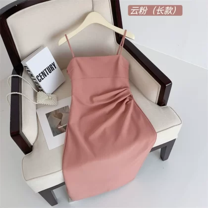 | nameOriginal | Pink long and short suspender dress for women summer new style waist pleated temperament high-end sleeveless hip skirt trendy |
