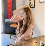 فستان شيونغسام نسائي وردي معدل وأكمام كبيرة مقلوب بتصميم من جلد الغزال لخريف 2024 فستان جديد