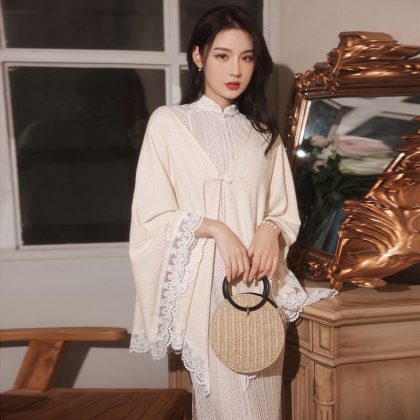 Pink modified cheongsam women's young inverted large sleeve suede design texture 2024 autumn new dress