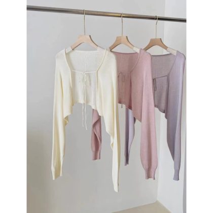 | nameOriginal | Pink Strap Knitted Cardigan Women's Thin Summer Shawl Air-conditioning Shirt Strap Outer Blouse Waistcoat Ice Silk Top |