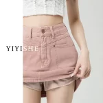 وردي رقيقة تصميم خط نصف الجسم تنورة الدنيم