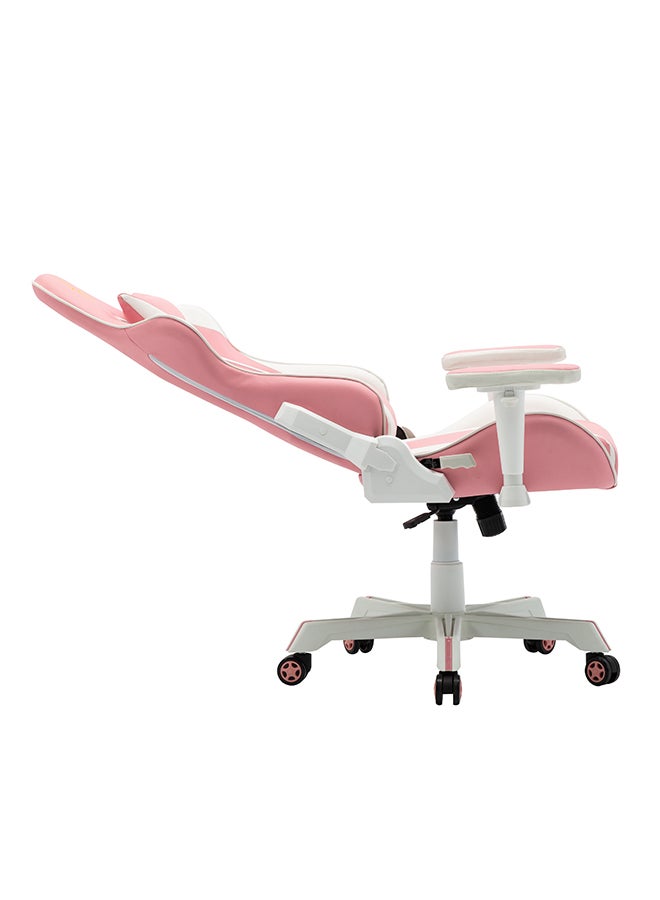 Ergonomically Designed Super Comfort Gaming Chair With Headrest Pillow, Lumbar Cushion And Retractable Footrest Pink/White 84×65.5x29cm