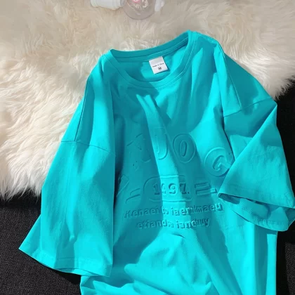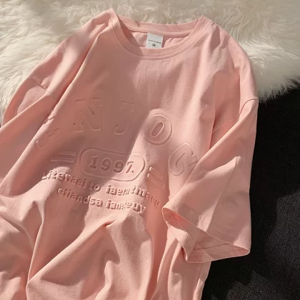 Pink women's loose street hiphop short-sleeved T-shirt