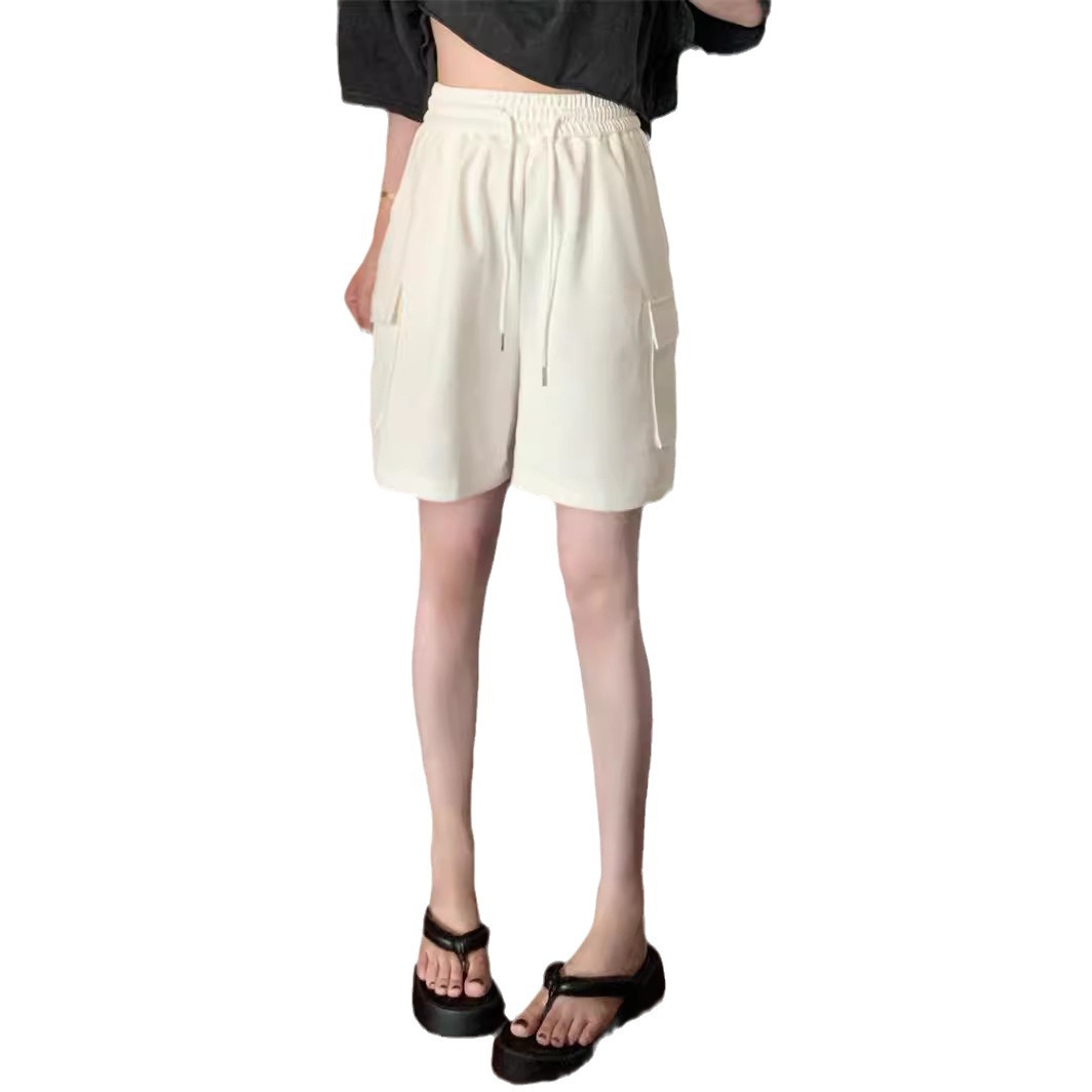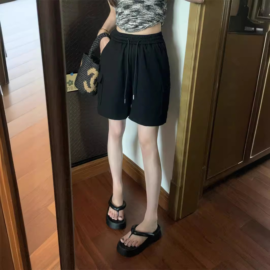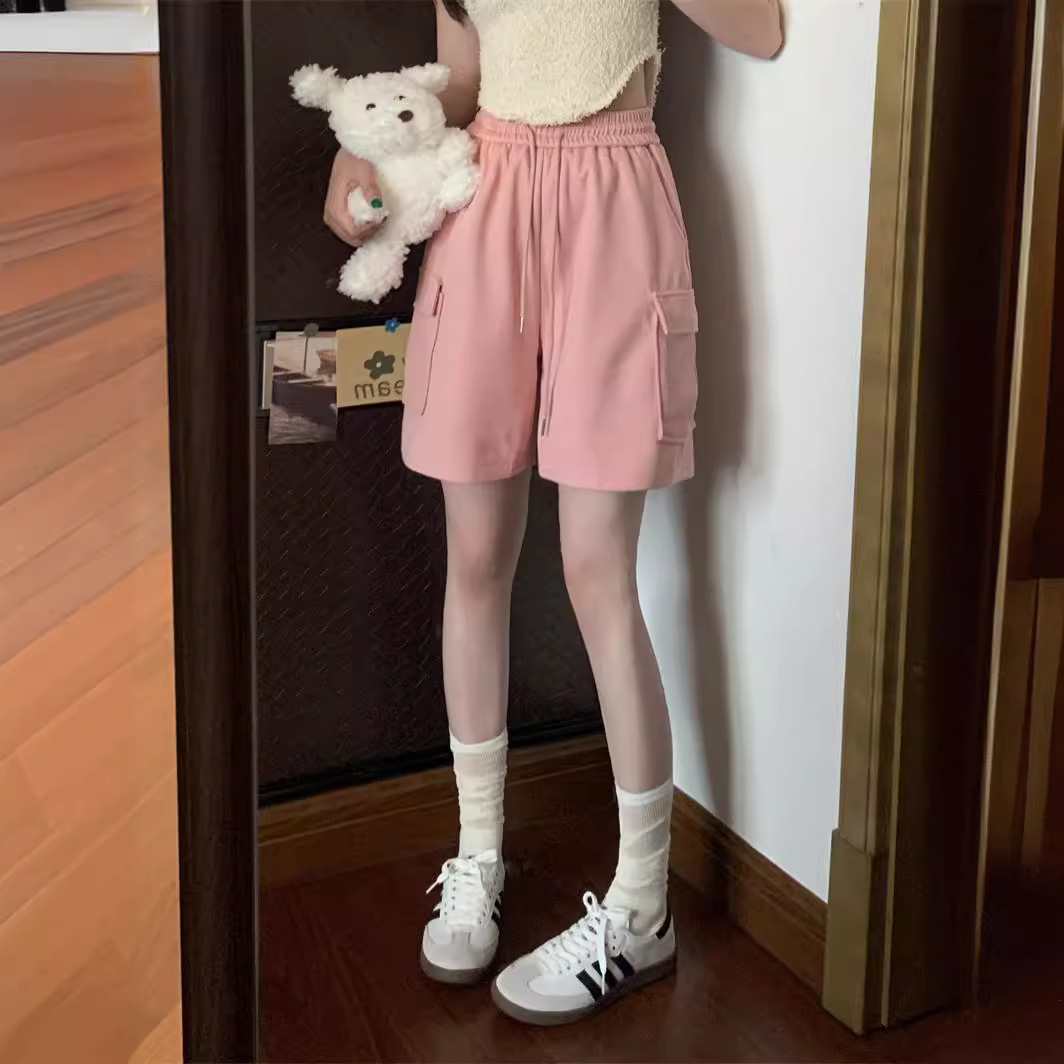 Pink Workwear Sports Shorts Women's Pants Summer Elasticity Waist Design Sense Niche Loose Straight Leg Wide Leg Casual Pants