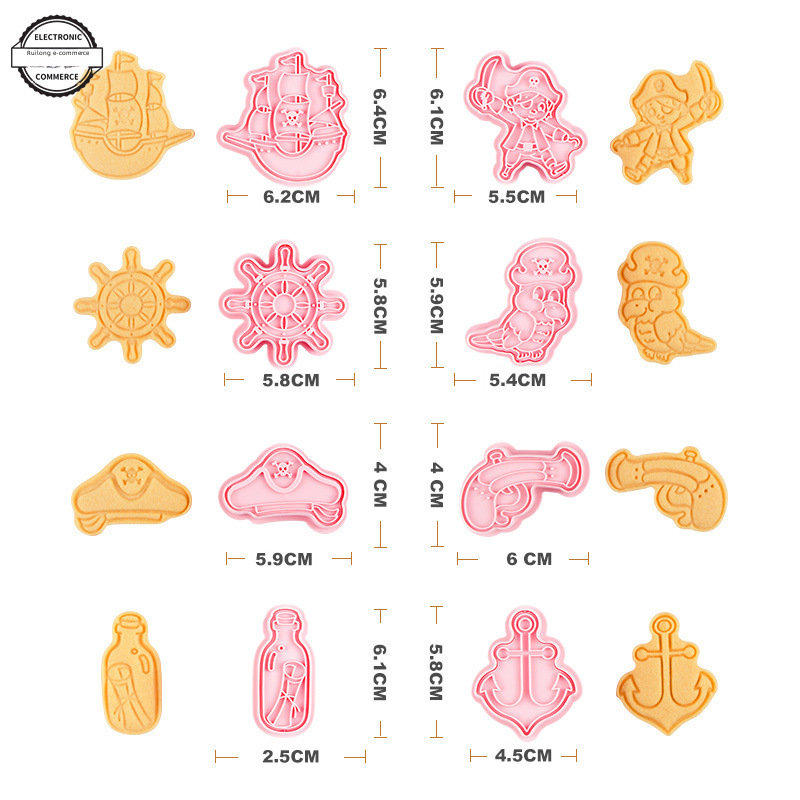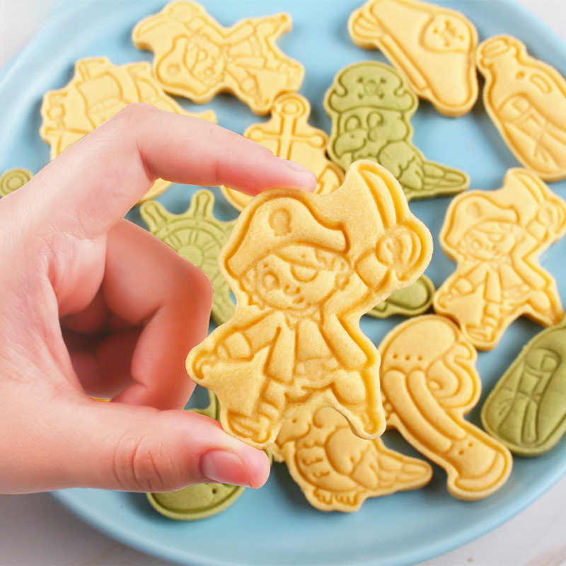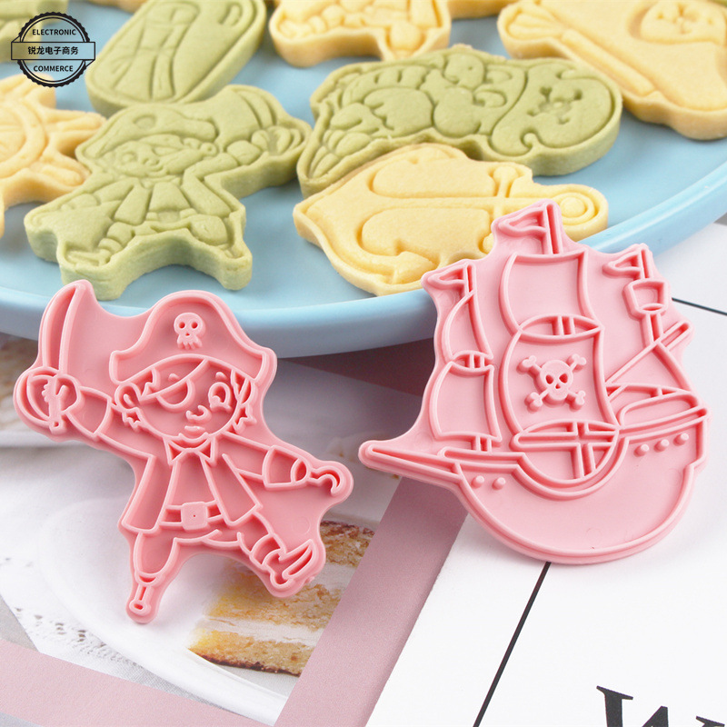 Pirate Ship Biscuit Mold Cartoon 3D Pressing Cookie Cutting Mold Flip Sugar Cake Baking Tool Skull Bone