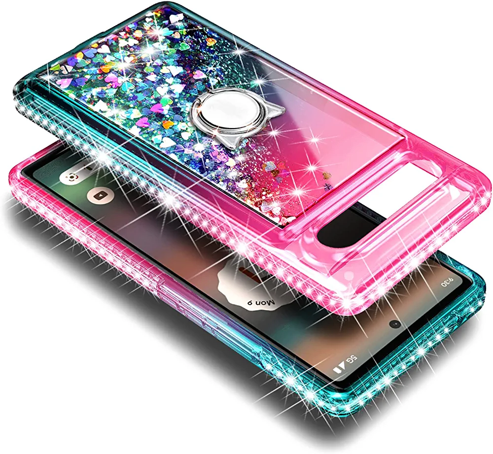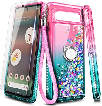 | nameOriginal | NZND Case for Pixel 6A with Tempered Glass Screen Protector, Ring Holder/Wrist Strap, Glitter Liquid Floating Waterfall Durable Girls Kids Women Cute Phone Case (Pink/Aqua) |