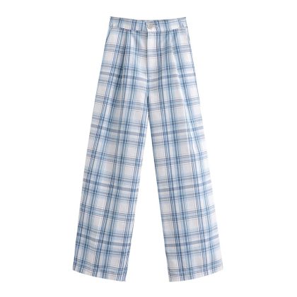 | nameOriginal | Plaid Pants Women's Summer Thin High Waist Wide Leg Women's Pants Loose Slimming Casual Pants Straight Plaid Suit Long Pants |