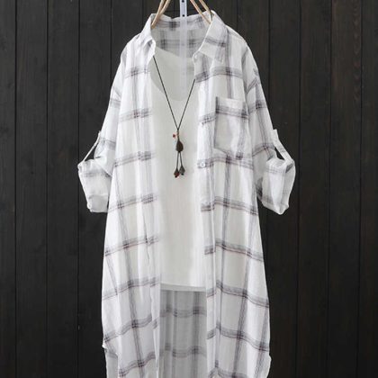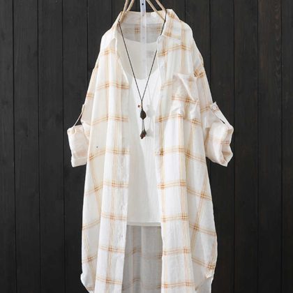 | nameOriginal | Plaid Shirt Women's Summer 2023 Korean-style Loose Mid-length Sunscreen Clothing Hong Kong-style Thin Coat Shirt Women's Trendy |