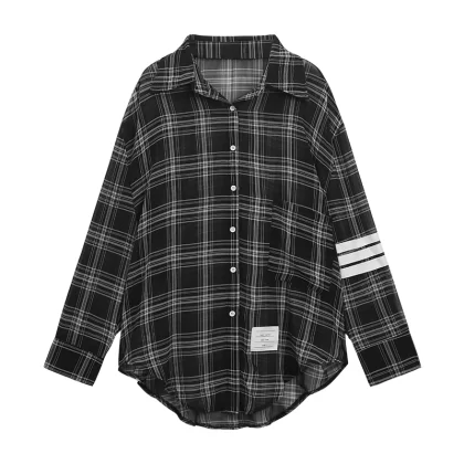 Plaid spring hot girl design long-sleeved sun protection shirt