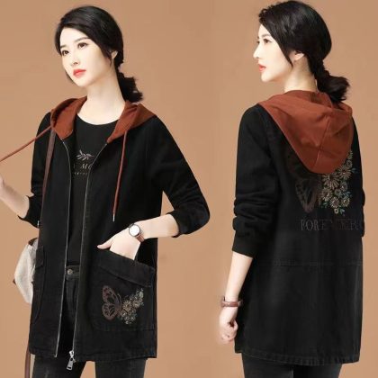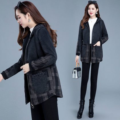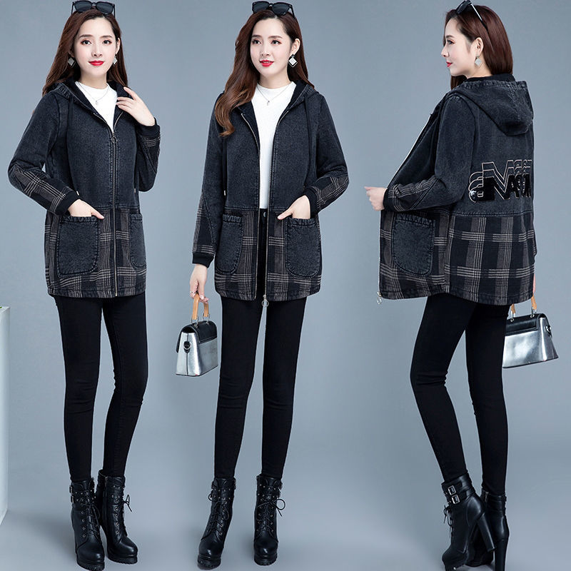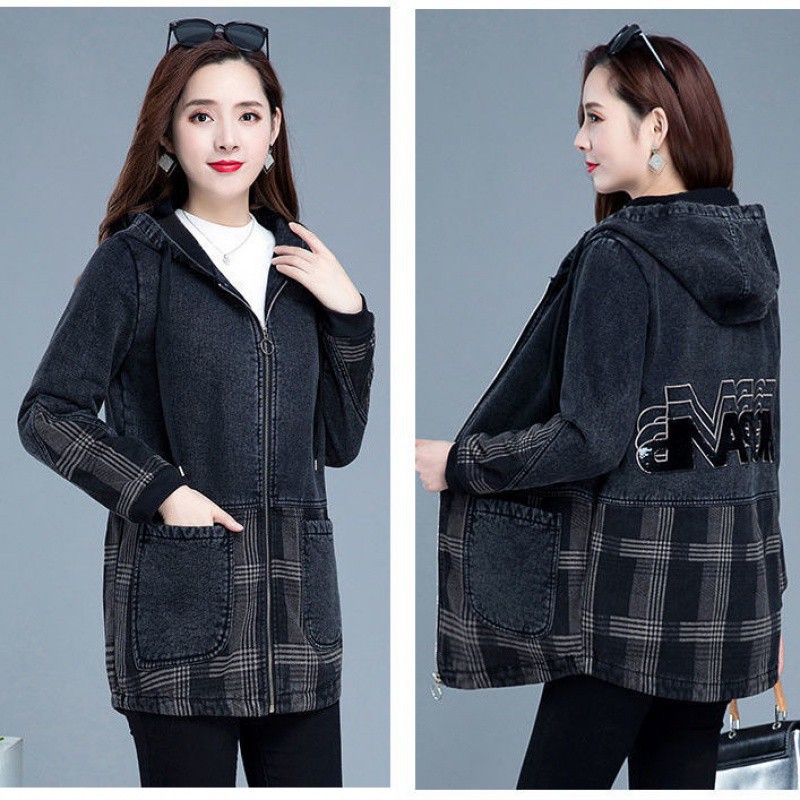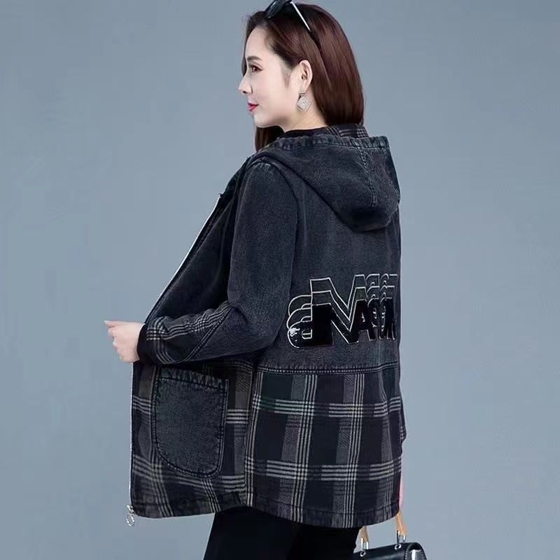 | nameOriginal | Plaid Stitching Denim Coat Women's Spring and Autumn 2024 New Fashion Loose Casual All-match Mother Western Style Top |