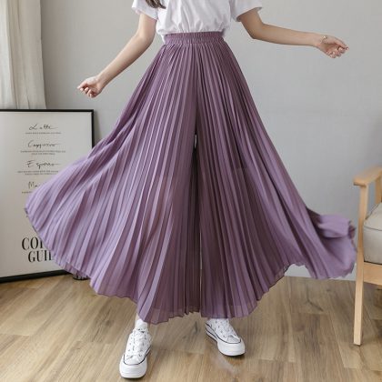 | nameOriginal | Pleated Chiffon Wide-leg Pants Women's Spring and Summer 2024 New Arrival Thin High Waist Draped Slim-fit Loose Waist Cropped Pants Large Size |