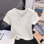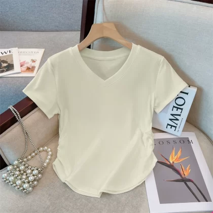 | nameOriginal | Pleated cotton slim fit v-neck short-sleeved right shoulder t-shirt top |
