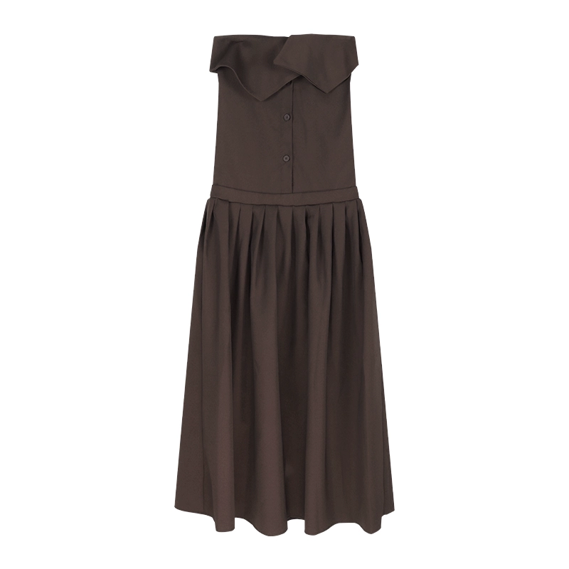 Pleated gray summer A-line skirt with high-end tube top