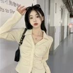 Pleated long-sleeved right shoulder fat girl design niche shirt
