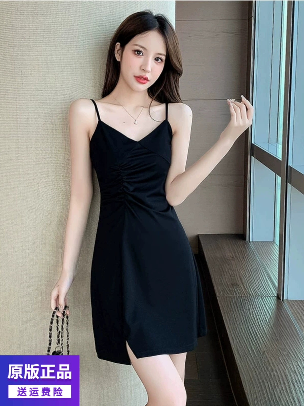 | nameOriginal | Pleated pink temperament high-end sexy suspender dress |