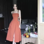 فستان بحمالات بشق صيفي 2024 بتصميم كلاسيكي مطوي