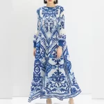 | nameOriginal | Pleated retro-flavored skirt with blue and white porcelain print |