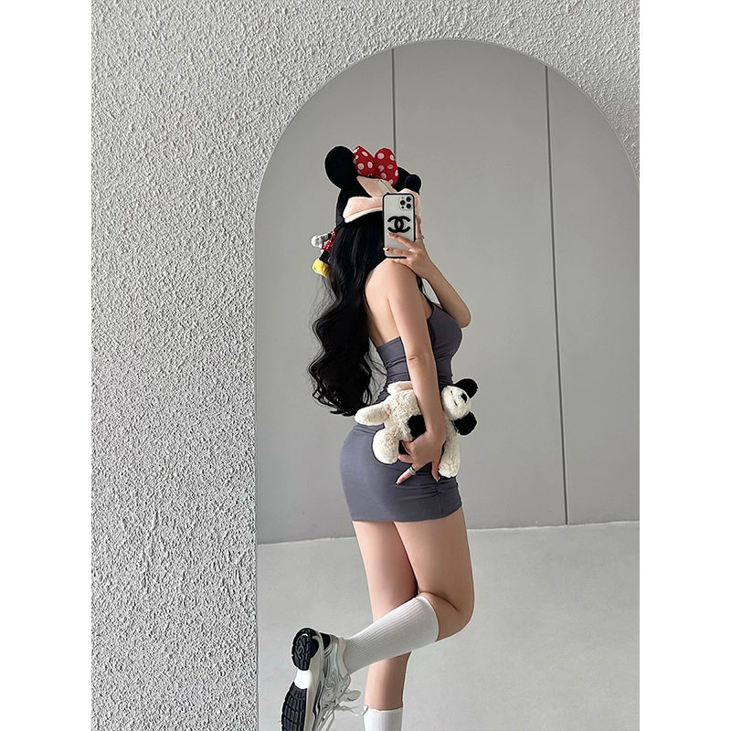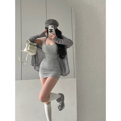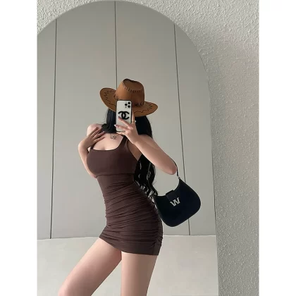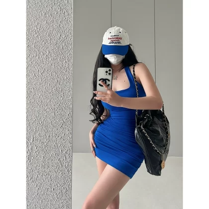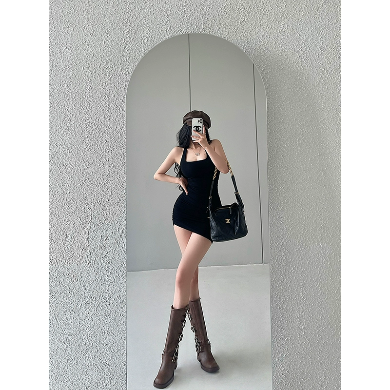 | nameOriginal | Pleated sexy backless tight slimming dress with halter neck |