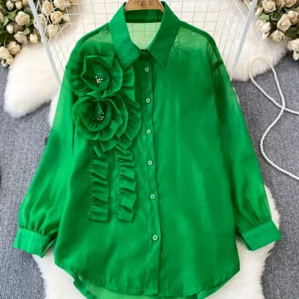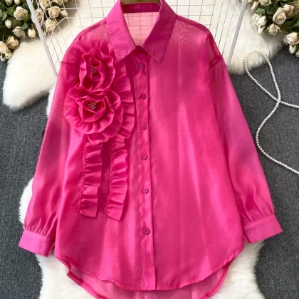 أكمام طويلة كاجوال فضفاضة ذات صدر واحد مع زهور كبيرة
