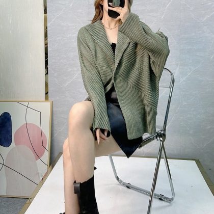 | nameOriginal | Pleated sweater thick coat women's clothing spring and autumn 2024 fashion design sense niche loose all-match one button cardigan |