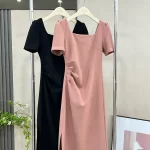 | nameOriginal | Pleated waist slit dress summer simple short sleeves |