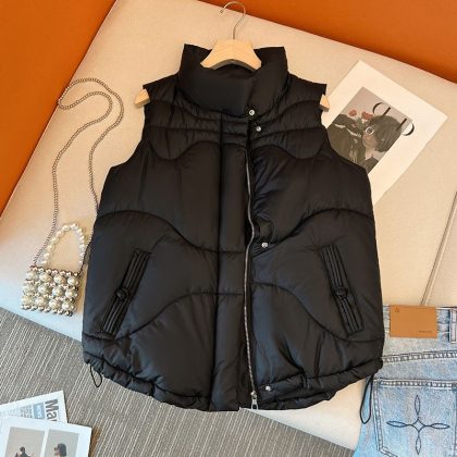 | nameOriginal | Plus size 2023 Winter new style women's clothing for fat girls solid color Zipper fashion loose sleeveless stand collar down cotton vest |