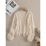 قميص جديد أنيق فريد من نوعه لعام 2024 مقاس كبير قميص صناعة ثقيلة ذو مظهر جيد للغاية قميص بطيات مشمش خفيف قميص نسائي للربيع والصيف