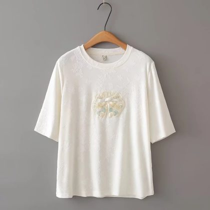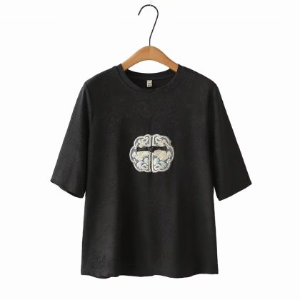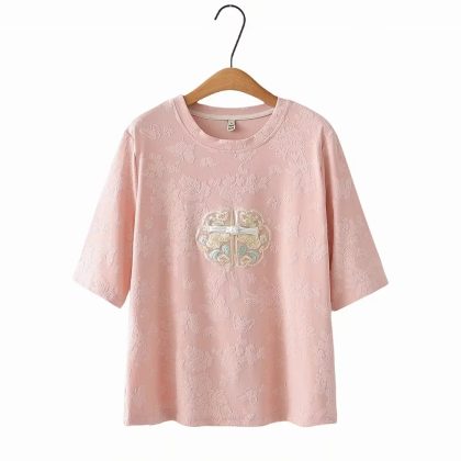 | nameOriginal | plus size Chinese Style Mid-Sleeve T-Shirt New 2024 Summer Loose Jacquard Short-Sleeved Mother Women's Top |