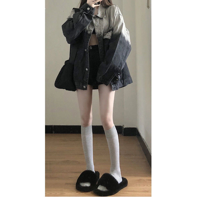 | nameOriginal | plus size Chubby American Retro Denim Jacket Women's Spring and Autumn Design Sense Flesh Covering Slim Gradient Fried Street Jacket Top |