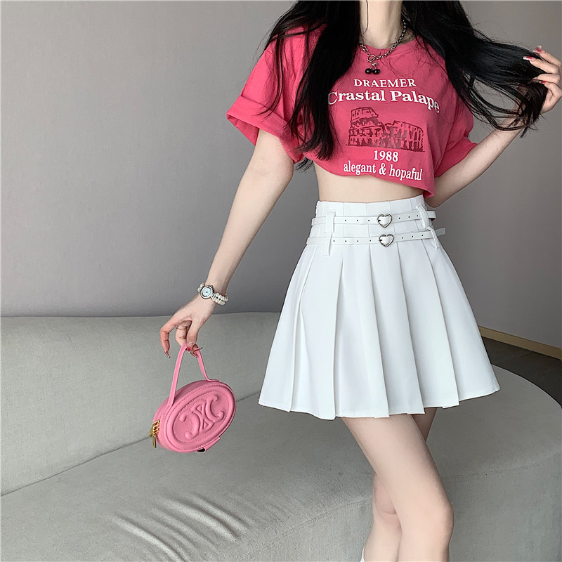 plus size Chubby mm2024 Spring Women's Skirt High Waist Slimming Pear Shape Body Skirt Hot Girl All-Match Pleated Skirt