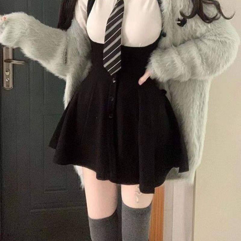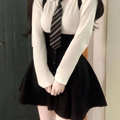 | nameOriginal | plus size Chubby Sister Academy Style Tie White Shirt Autumn and Winter Slim Design Sense Hot Girl Strap Skirt suit |