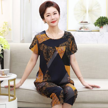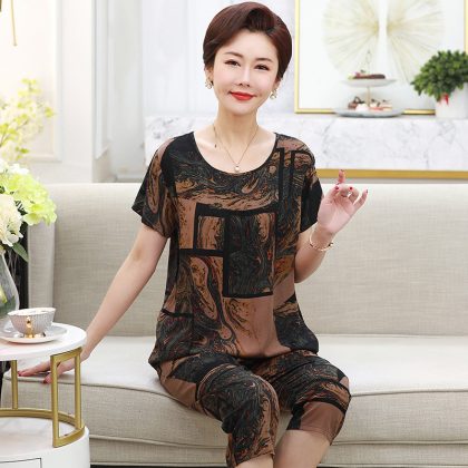 | nameOriginal | plus size Clothes Mother's Summer Short-sleeved Pants Middle-aged and Elderly Women's Summer Clothes Grandma's Cotton Silk suit for the Elderly |