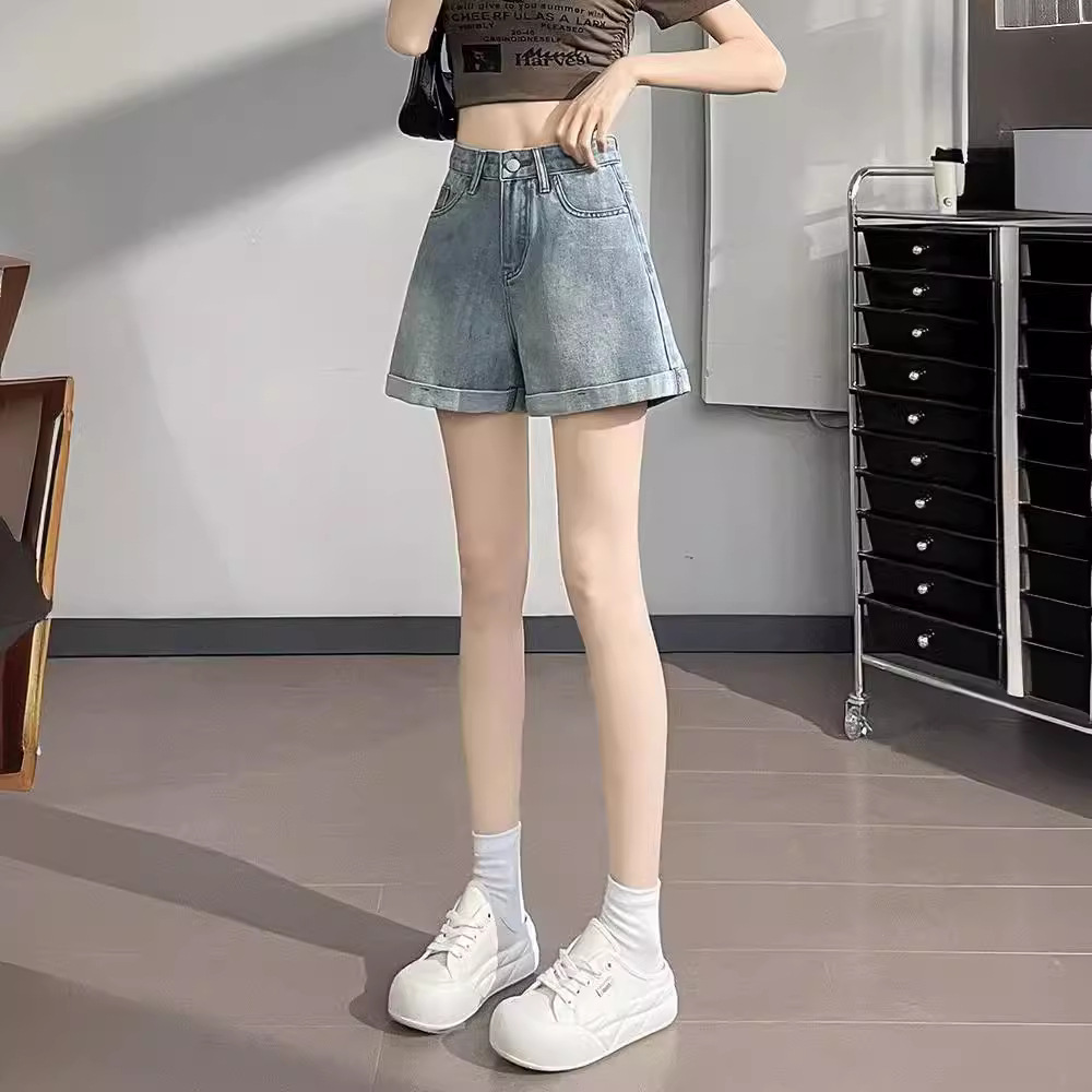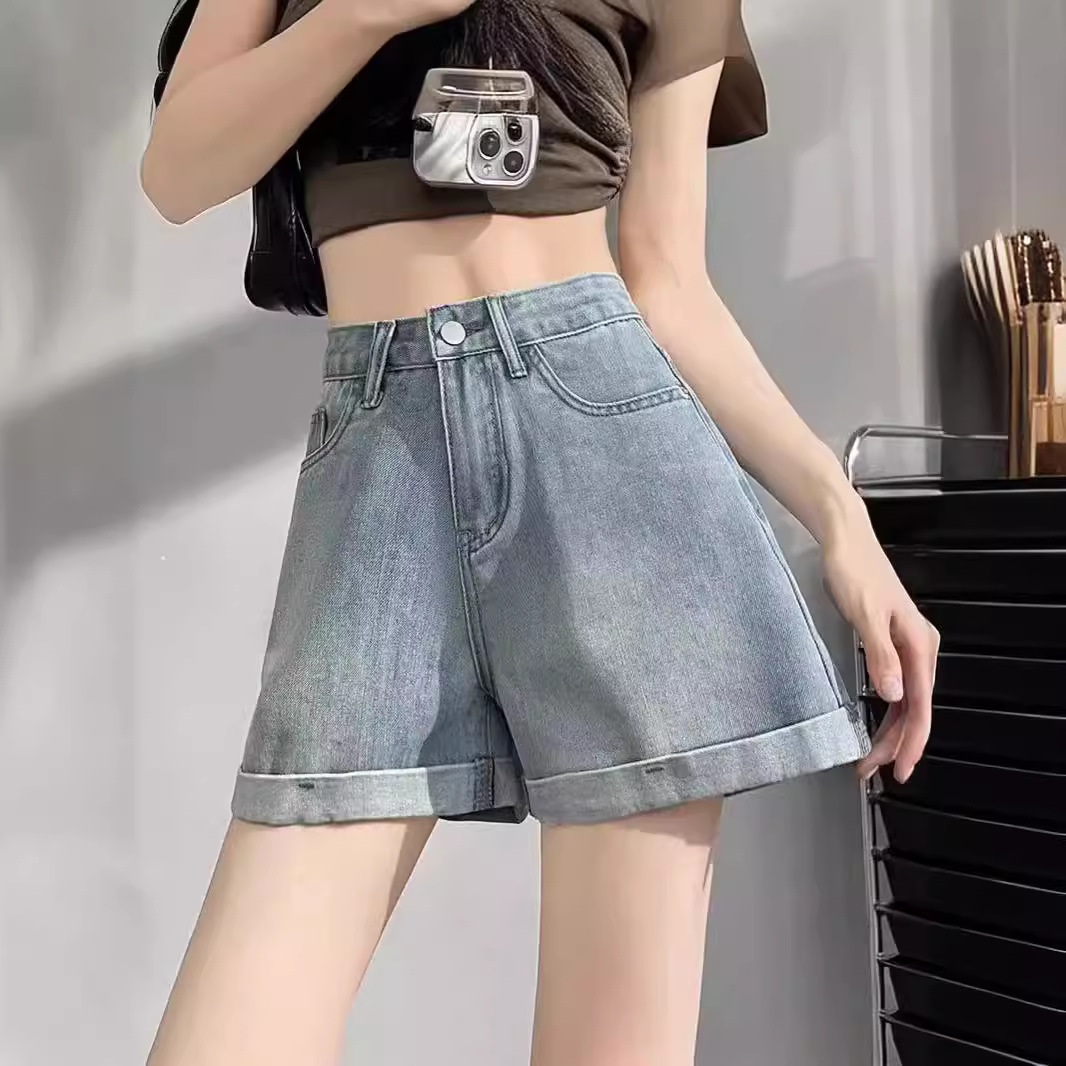 | nameOriginal | plus size Denim Shorts Women's Summer 2024 New Arrival High Waist Embroidered Small Height Curling A- Word All-Match Hot Pants |