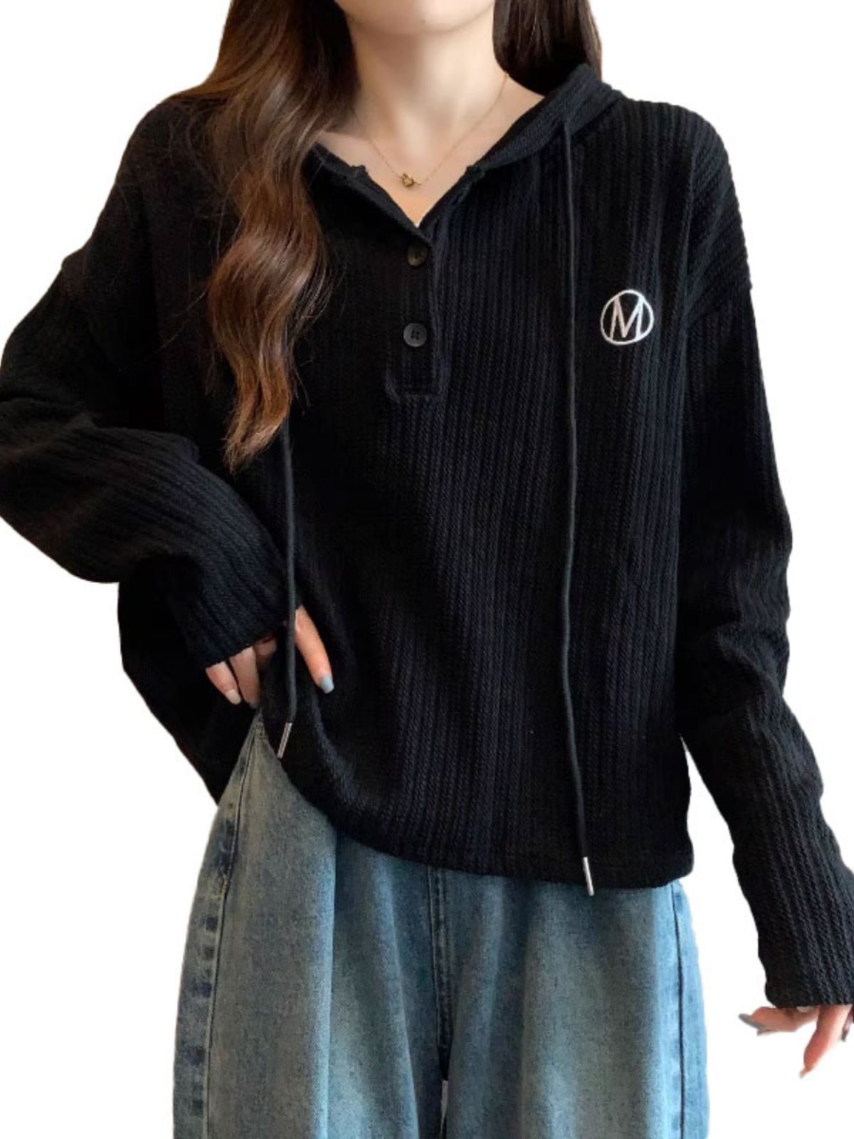 | nameOriginal | plus size European long sleeve hooded sweater coat women's 2024 spring chubby girl belly hide meat thin base coat |