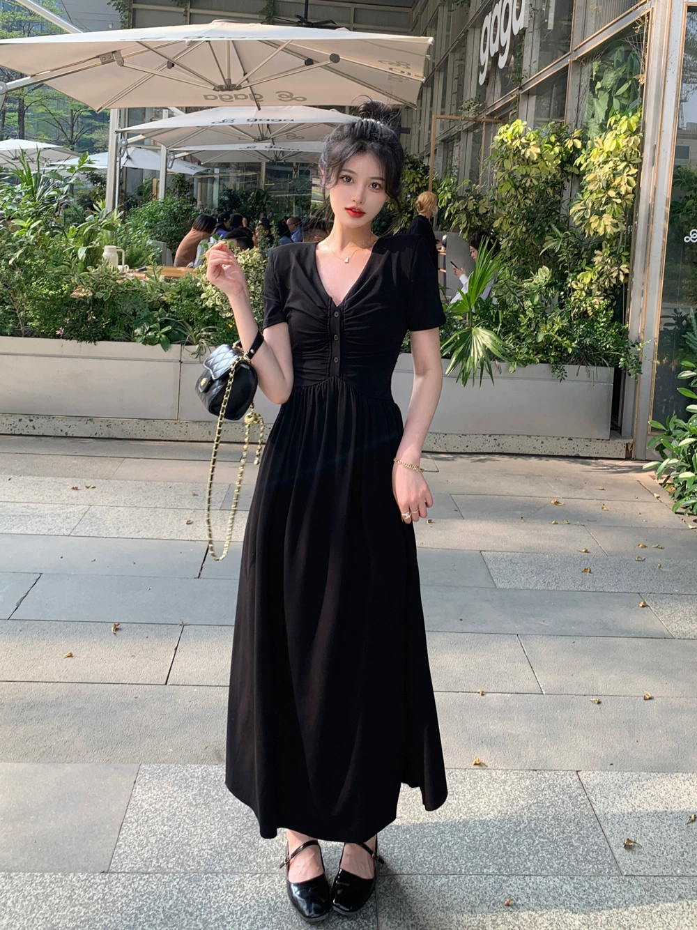 | nameOriginal | Plus size fat girl V-neck niche design dress female summer slit fat mm slimming belly-covering skirt |