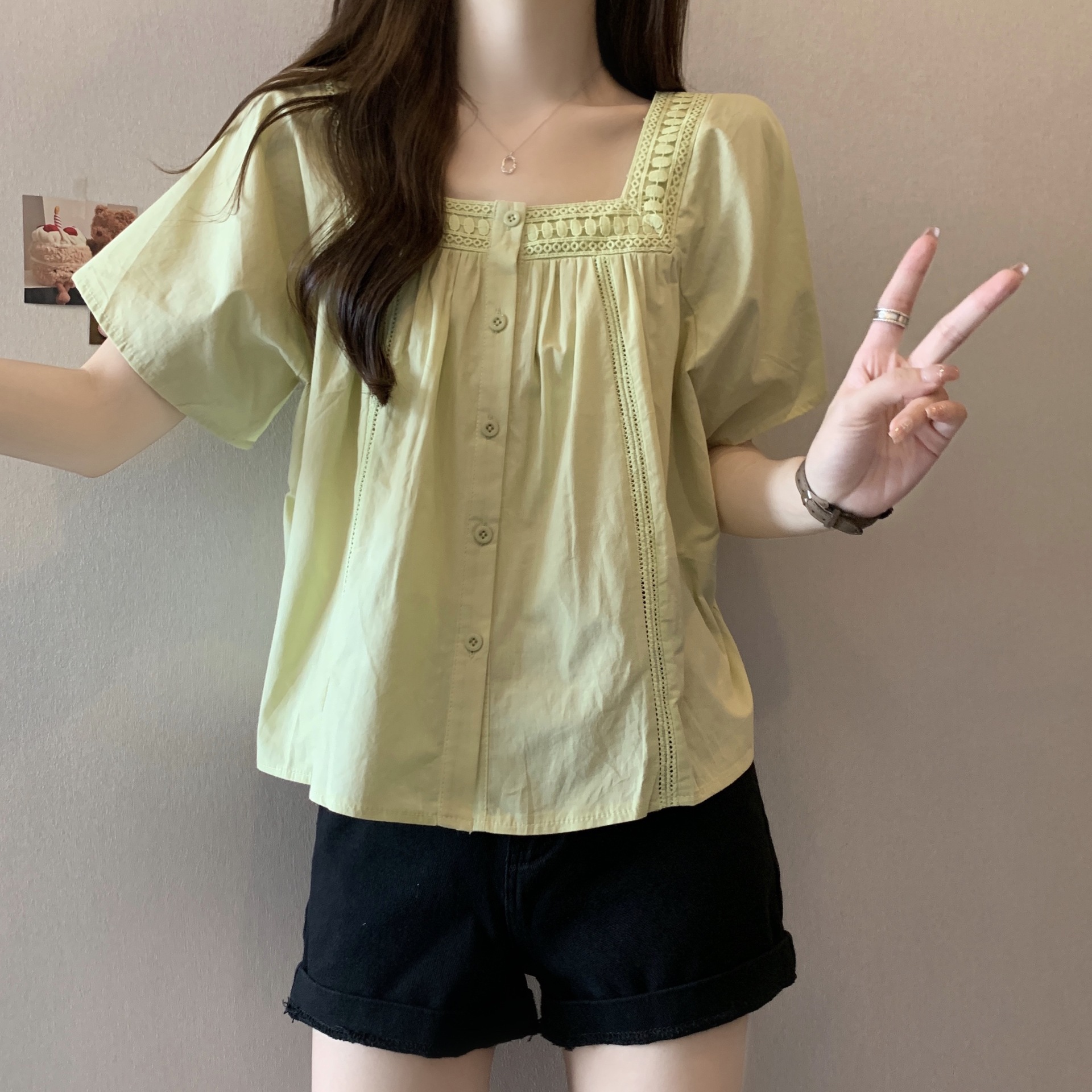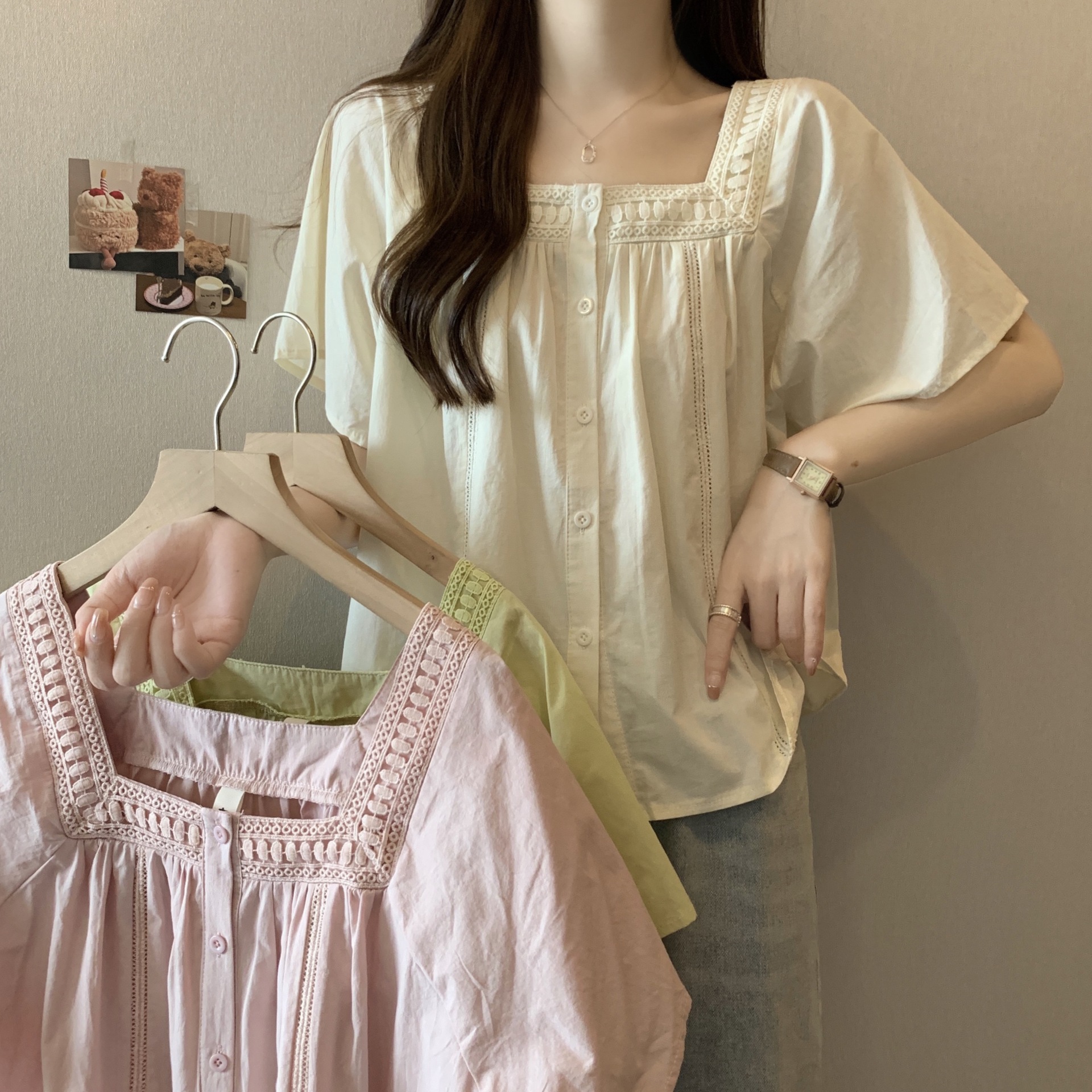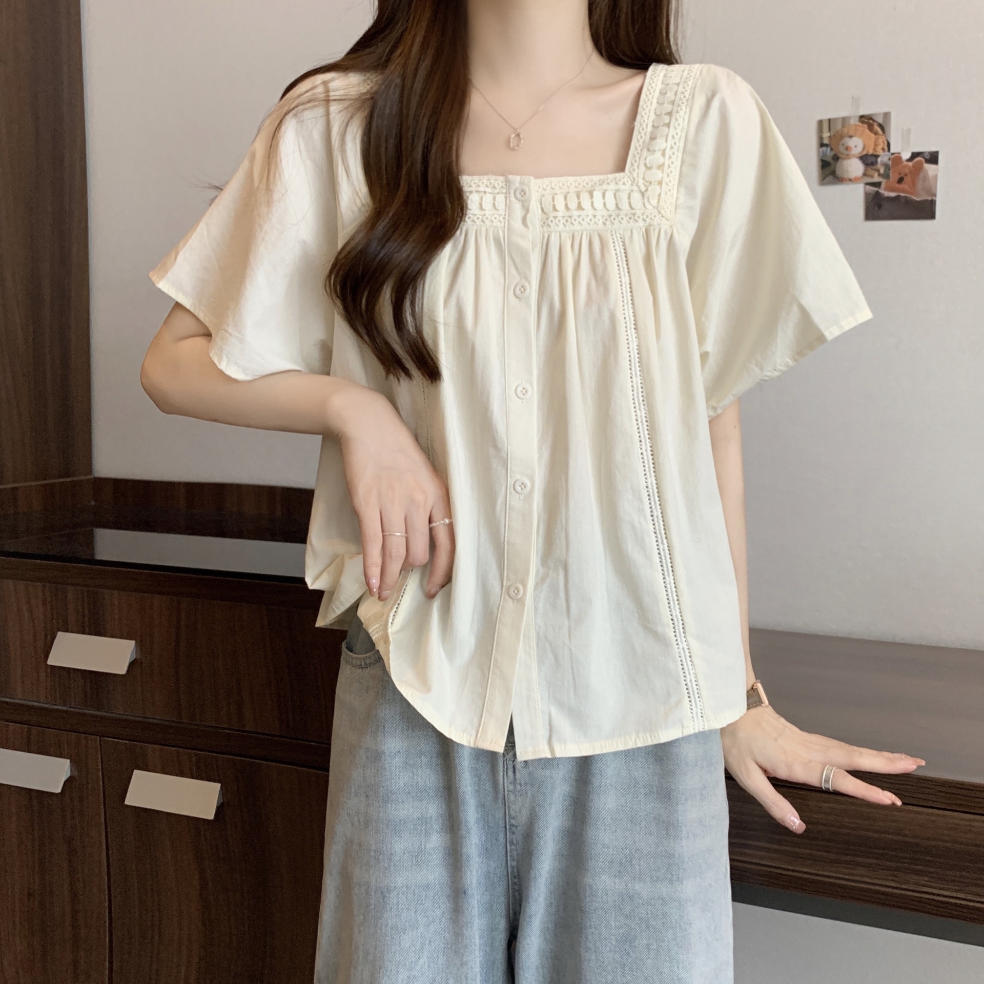 | nameOriginal | plus size French Square Collar Short Sleeve Chiffon Shirt Women's 2024 New Summer chubby girl Belly Covering Slimming Doll Shirt Top |