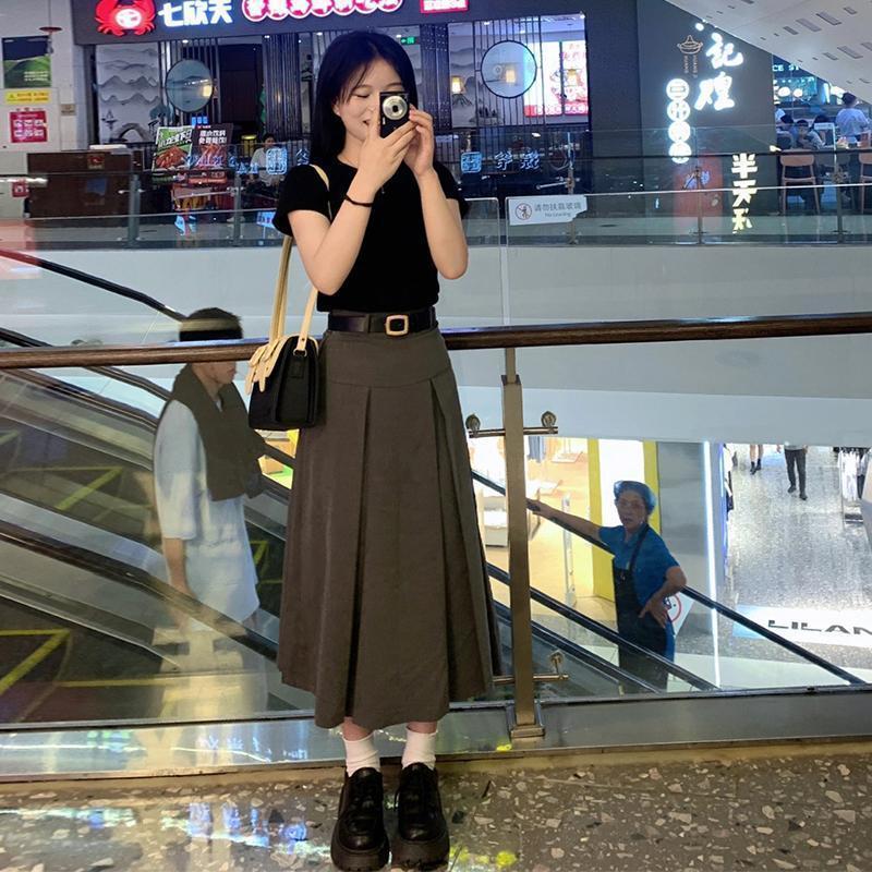 | nameOriginal | plus size Grey High Waist Pleated Umbrella Skirt Skirt Women's Summer Chubby suit Short-sleeved Shoulder Shirt Two-piece Set Fashionable |