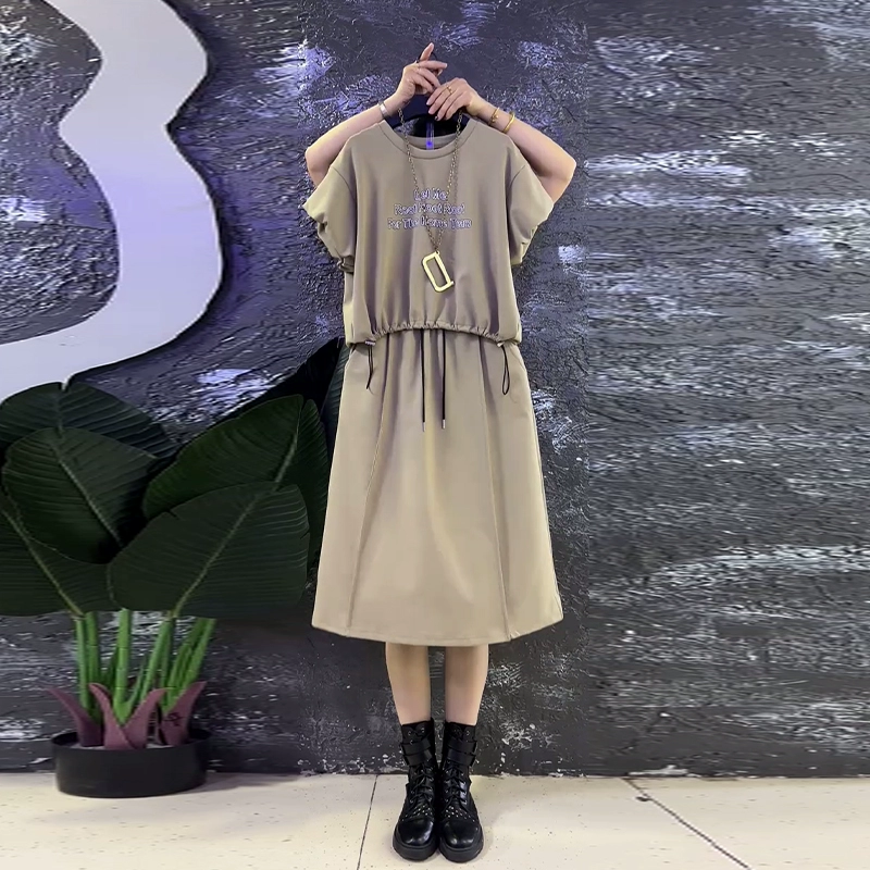 | nameOriginal | Plus size letter drawstring fat girl round neck short sleeves |
