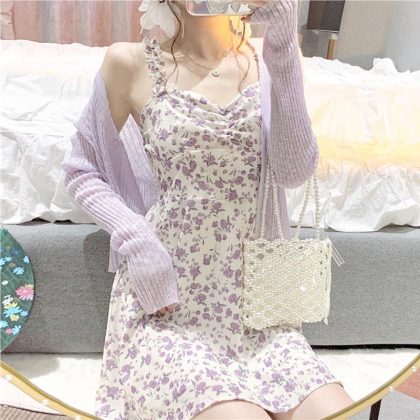 | nameOriginal | plus size Purple dress Chubby Slip Dress suit Women's Summer French Style Gentle Style First Love Floral Dress New in Style |