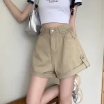Plus size rolled hem high waisted A-line jeans for a pear-shaped figure