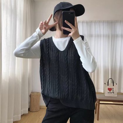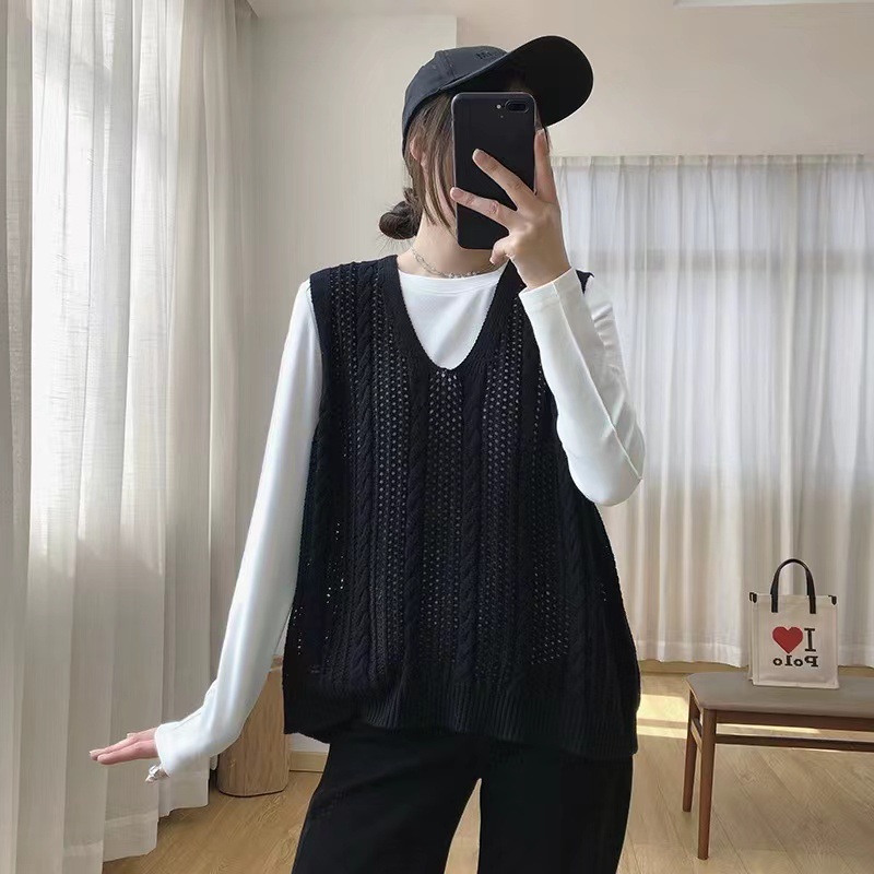 | nameOriginal | plus size V-neck Hollow Pullover Sleeveless Sweater Vest Women's 2024 New Spring and Autumn chubby girl Loose Knitted Vest |