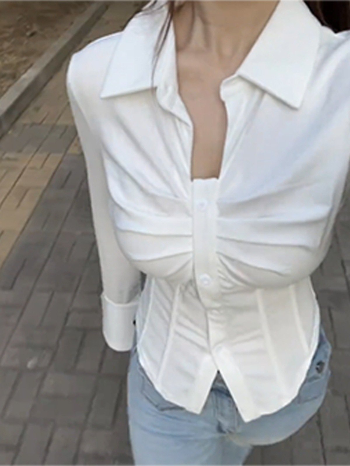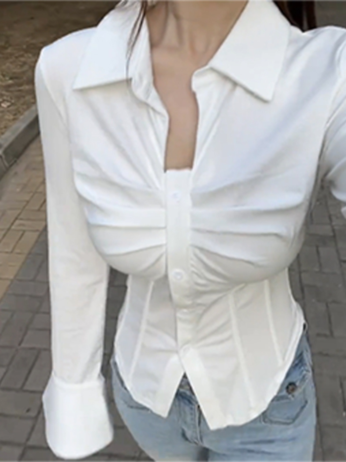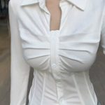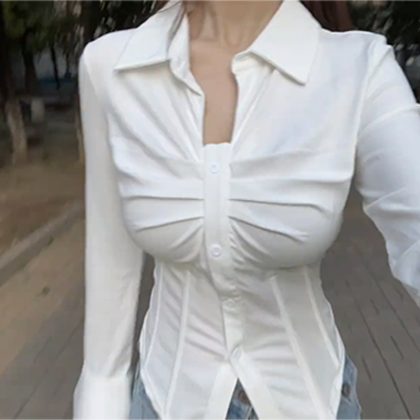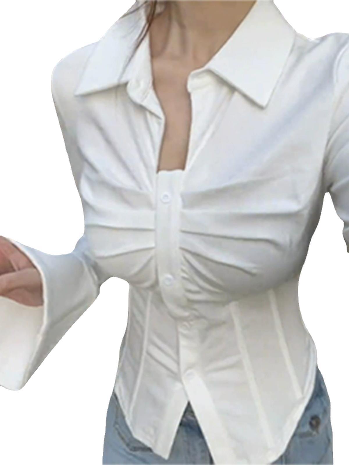 قميص داخلي نسائي ضيق بخصر كبير مقاس كبير لفتاة الربيع السمين للتنحيف بخصر نقي وأكمام واسعة ورقبة على شكل حرف v ملتوية على شكل هيكل السمكة