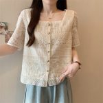 | nameOriginal | plus size Women's 2024 Summer New chubby girl Square Collar Chanel Style All-match Slimming Heavy Industry Embroidered Short Sleeve Shirt Top |