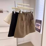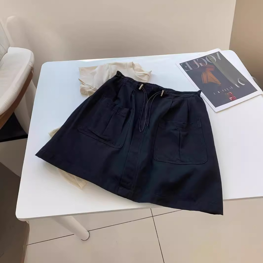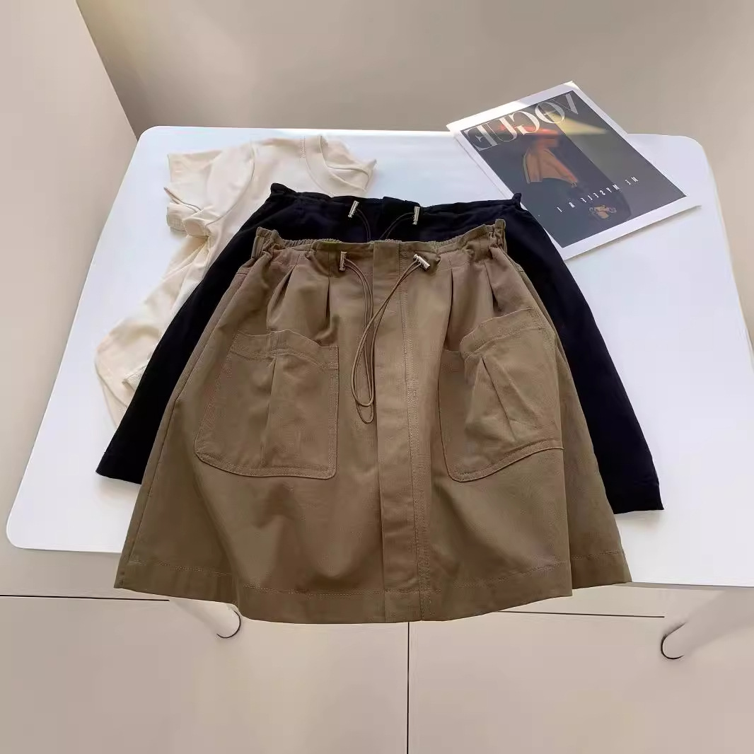 plus size Women's 2024 Summer Vintage Workwear Skirt chubby girl Slimming Design Sense Big Pocket Hip Skirt Pants