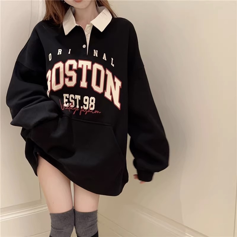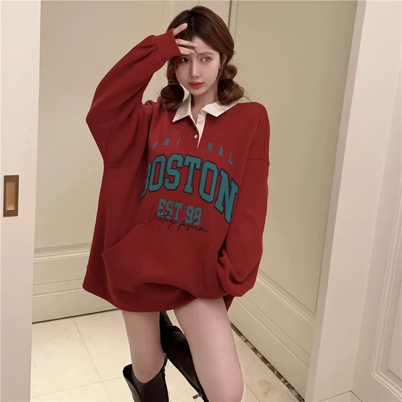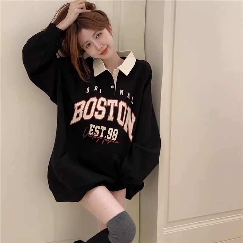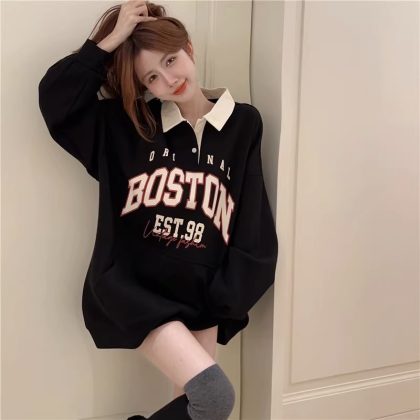 | nameOriginal | plus size women's autumn American retro POLO collar loose sweater women's belly slim coat fat mm200 kg 300 |