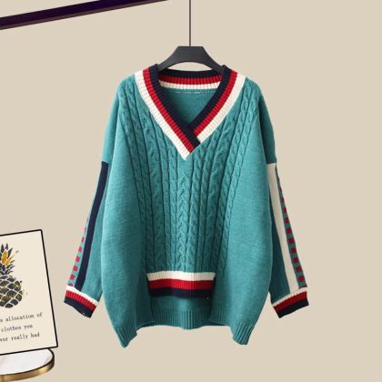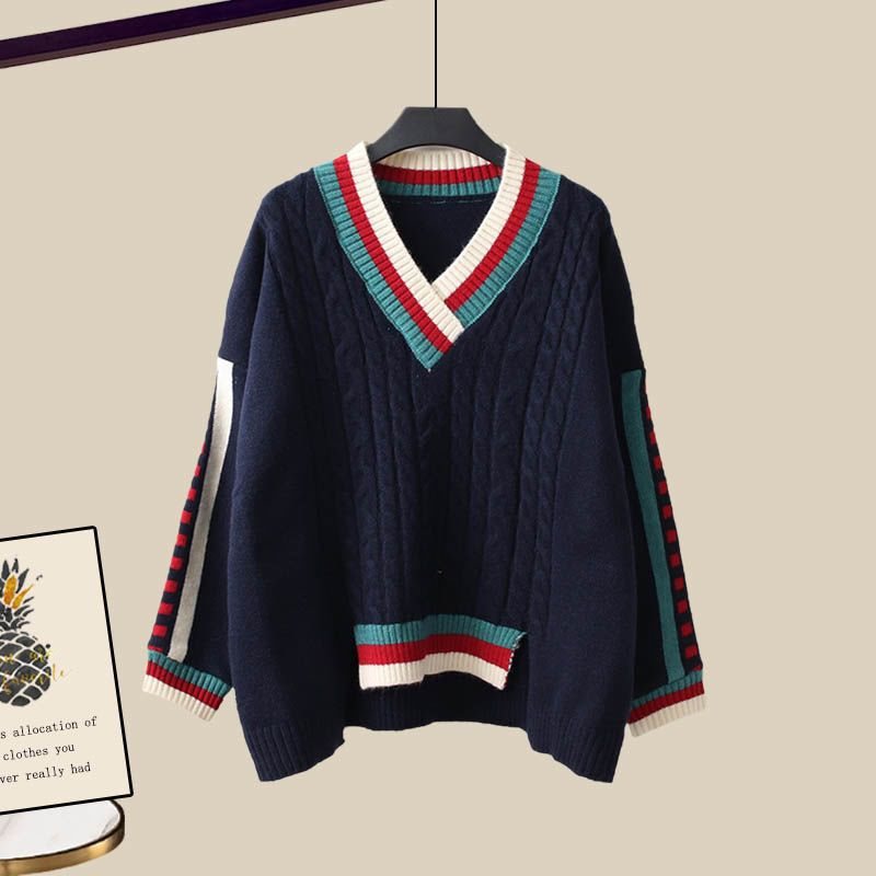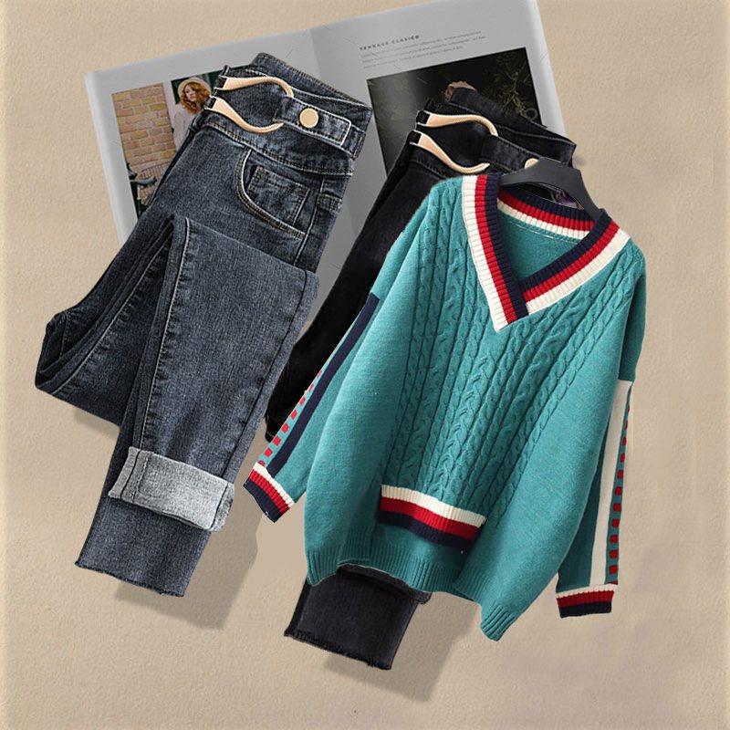 | nameOriginal | plus size Women's Autumn suit Women's 2021 New Styline Loose Sweater High Waist Slimming Jeans Two-piece Set Trendy |