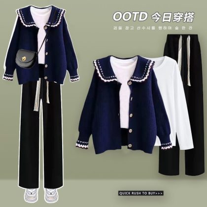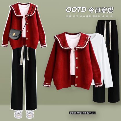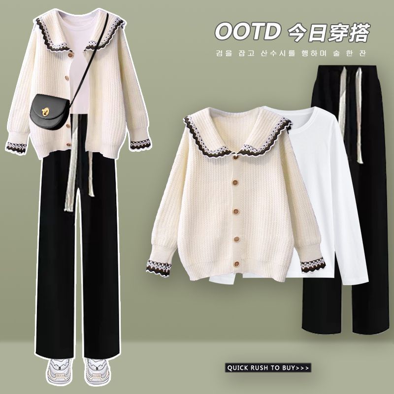 | nameOriginal | plus size women's autumn suit women's 2022 new French temperament sweater shirt slim wide leg pants three-piece suit |