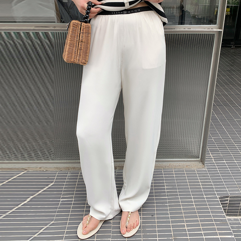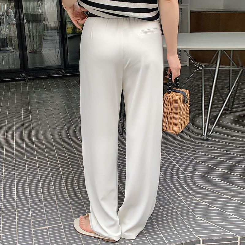 plus size women's casual elastic waist pants women's straight tube drape pants 2024 summer chubby girl floor wide leg pants NK1022