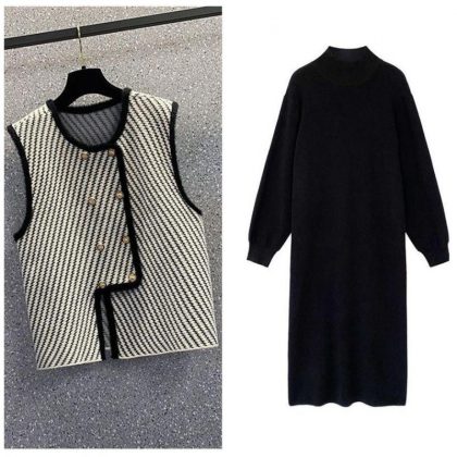 | nameOriginal | Plus size women's clothing fashion suit high-grade houndstooth vest + V-neck knitted dress autumn and winter set |