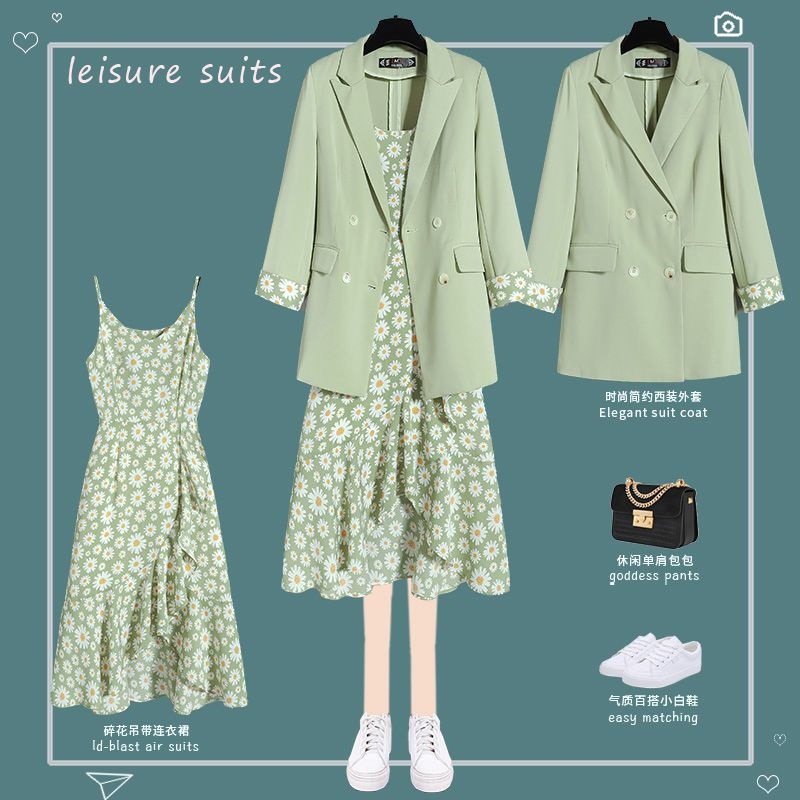 | nameOriginal | plus size Women's Fried Street Internet Popular Professional Suit suit Women's Spring and Summer Korean-style Strap Floral dress Two-piece Set |
